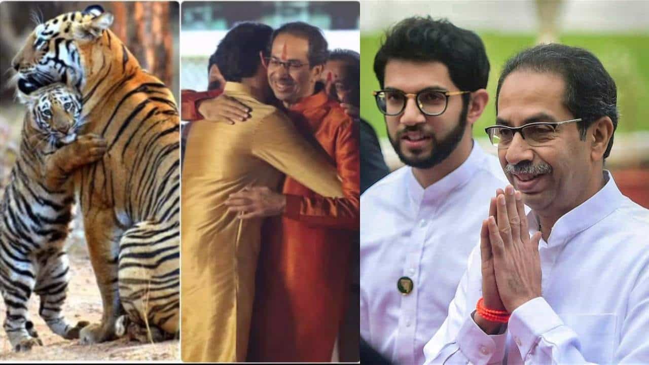 हा फोटो आजचा नाही. उद्धव ठाकरे यांनी मुख्यमंत्रीपदाची शपथ घेतली होती. त्यावेळी आदित्य ठाकरे यांनी वडिलांना घट्ट मिठी मारत त्यांना शुभेच्छा दिल्या होत्या. तेव्हाचा हा फोटो आहे. हा निकाल पक्षाच्या विरोधात गेल्यानंतर आदित्य ठाकरे यांनी हाच फोटो पुन्हा एकदा शेअर केला आहे. पण त्यासोबत वाघ आणि बछड्याच्या गळाभेटीचा फोटोही पोस्ट केला आहे. हा फोटो पाहिल्यावर अंगावर काटा आल्याशिवाय राहत नाही.