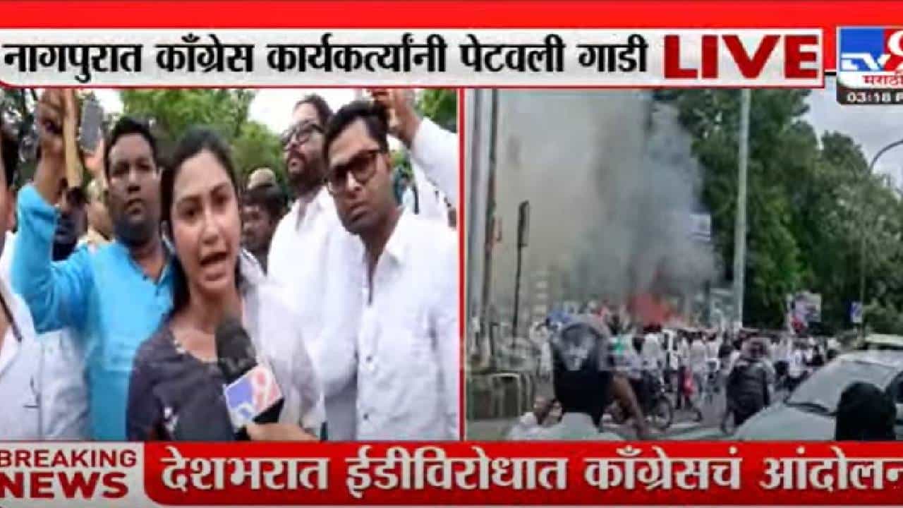 Congress Protest : नागपुरात काँग्रेस आंदोलनाला हिंसक वळण, जीपीओ चौकात गाडी जाळली; सोनिया गांधींच्या ईडी चौकशीला तीव्र विरोध
