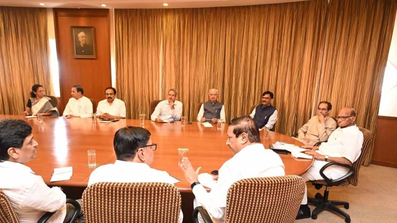 आज वरळीत महाविकास आघाडीची बैठक पार पडली. या बैठकीला राष्ट्रवादीचे सर्वेसर्वा शरद पवार, माजी मुख्यमंत्री उद्धव ठाकरे, काँग्रेसचे नेते बाळासाहेब थोरात, काँग्रेसचे प्रदेशाध्यक्ष नाना पटोले, विरोधी पक्षनेते विजय वडेट्टीवार, खासदार सुप्रिया सुळे, संजय राऊत, सुभाष देसाई आणि इतर नेते उपस्थित होते. सुमारे दोन तास ही बैठक चालली. त्यानंतर संजय राऊत यांनी मीडियाशी संवाद साधून बैठकीचा तपशील दिला.