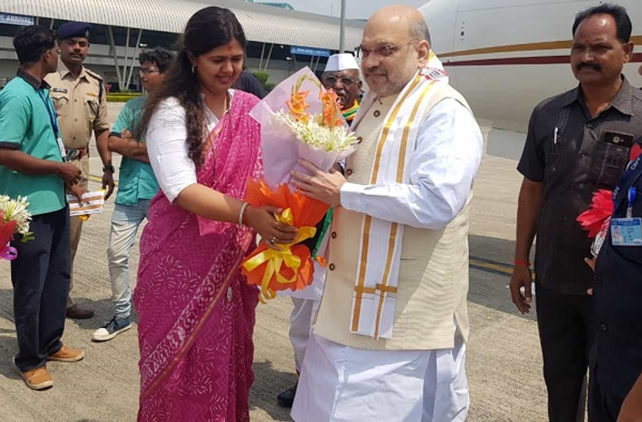 राज्याच्या महिला आणि बालविकासमंत्री पंकजा मुंडे यांनी देखील यावेळी अमित शाह आणि मोदींचं कौतुक केलं. पंकजा मुंडे म्हणाल्या, “या देशातील सर्वांना एकत्रित आणण्यासाठी राष्ट्रभक्ती हा एकच धागा आहे. राष्ट्रभक्तीतून सर्व रंगांना एकत्रित आणता येतं. अमित शाह यांच्या माध्यमातून कलम 370 हटवण्यात आलं. याकामासाठीच आम्ही त्यांना 370 तोफांची सलामी दिली.” या कार्यक्रमात 370 जणांनी हातात तिरंगे झेंडे घेऊन शाहांचं स्वागत केलं.