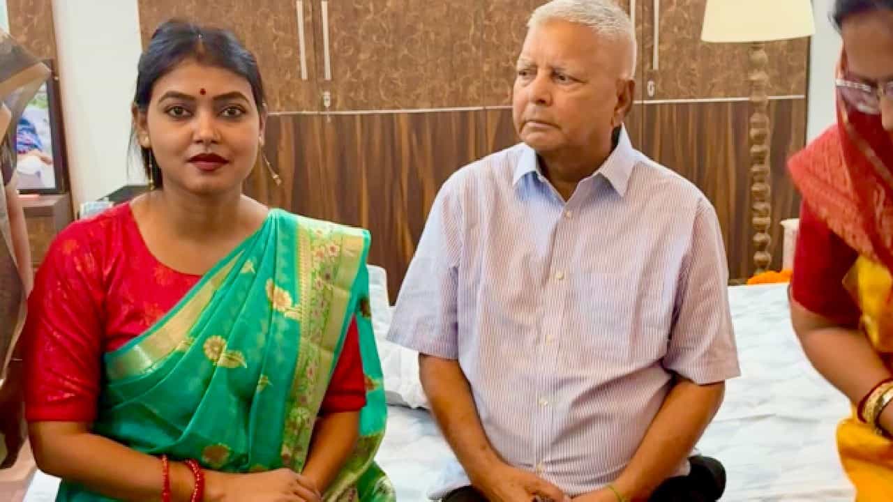 आरजेडीचे सर्वोच्च नेते लालू यादव यांच्यासोबत फोटोत दिसणारी महिला लाल रंगाचा ब्लाऊज आणि ग्रीन आणि गोल्डन कलरची साडी घालून बसलेली दिसत आहे. ही महिला पारंपारिक साजशृंगार लेवून सजूनधजून बसलेली दिसत आहे.
