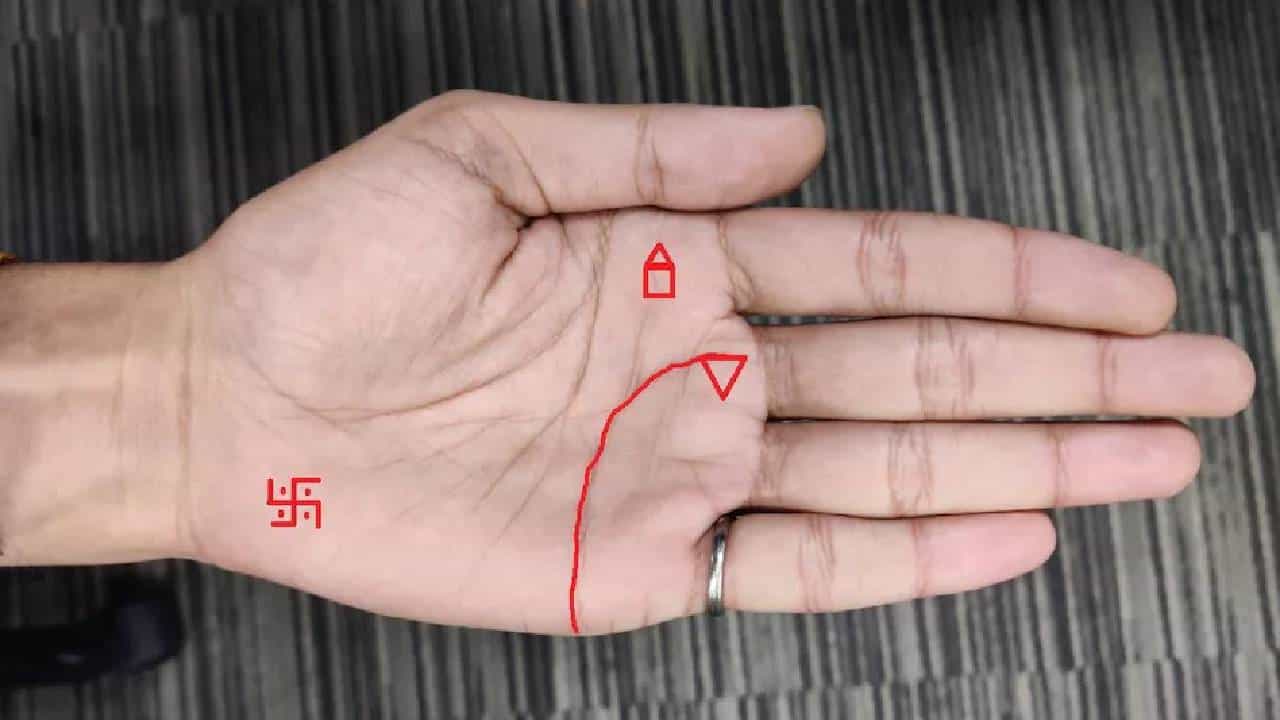 - मंदिर चिन्ह- गुरु पर्वतावर चौकोनी पेटीच्या वरच्या तर्जनी खाली असलेल्या त्रिकोणी चिन्हाला मंदिर चिन्ह म्हणतात. हे भाग्यशाली चिन्ह फार कमी लोकांच्या तळहातावर आढळते. असे म्हणतात की, ज्या लोकांच्या तळहातावर हे चिन्ह असते, ते खूप राजेशाही जीवन जगतात. त्यांना समाजात खूप मान मिळतो.