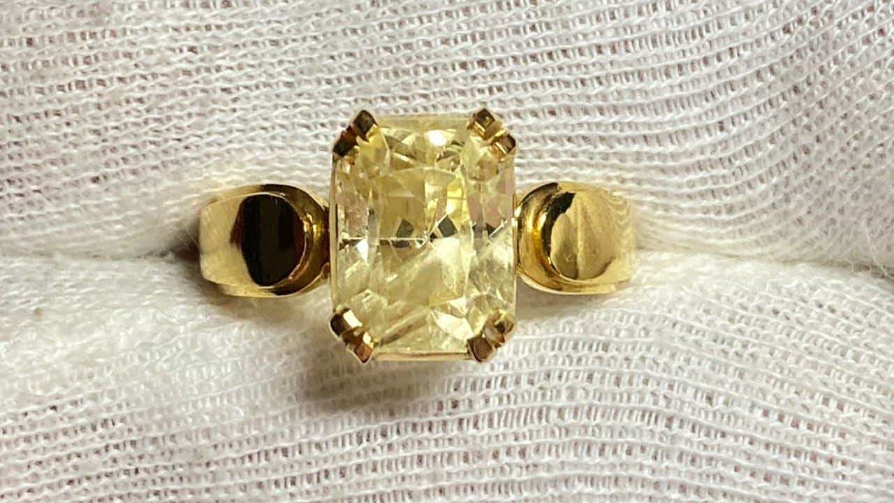 गुरुवारी सूर्योदयानंतर हे रत्न दूध, मध, गंगाजल, साखर इत्यादींच्या मिश्रणात टाकावे. त्यानंतर बृहस्पती देवासमोर उदबत्ती लावून ओम ब्रह्मा ब्रहस्पतीये नमः या मंत्राचा 108 वेळा जप करावा. त्यानंतर भगवान विष्णूच्या चरणी अंगठीला स्पर्श करून ती परिधान करावी. ही अंगठी उजव्या हाताच्या अनामिकेत घालावी.