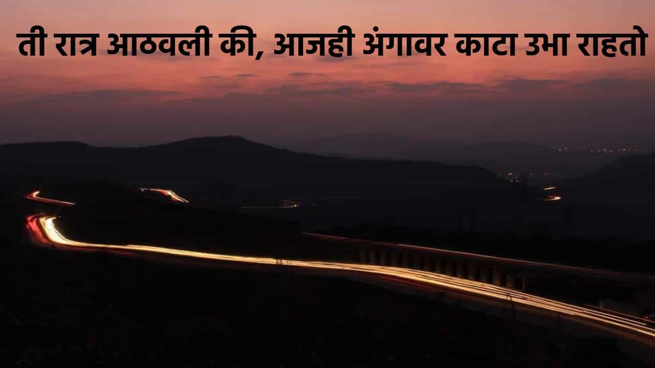 त्या रात्री आम्ही पाच जणांनी भयभीत होऊन चारशे किलोमीटरचा प्रवास केला, कित्येक किलोमीटर आम्हाला गाडीचं पुढं आणि पाठी सुद्धा दिसत नव्हती. सगळं बंद असल्यामुळे आम्ही घरी पोहोचतोय का ? अशी शंका मनात येत होती