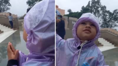 हा व्हिडीओ बघा. या व्हिडीओ मध्ये तुम्हाला एक छोटीशी गोंडस मुलगी दिसेल. पाऊस पडतोय त्यामुळे ही चिमुकली रेनकोट घालून उभी आहे. रेनकोट घालून ही छोटी हात जोडून उभी आहे, समोर गणपती बाप्पाची मोठी मूर्ती आहे. आपल्याला व्हिडीओ बघताना वाटतं की आता ही मुलगी बाप्पासमोर कुठलीतरी प्रार्थना म्हणेल पण तसं होत नाही. ही मुलगी खूप गोंडसपणे विचारते, “रेनकोट कुठंय त्याचं?”. हा प्रश्न ऐकून तिचे बाबा सुद्धा हसू लागतात. ती हा प्रश्न इतका सहज विचारते तिथे आपल्यालाही वाटतं, लहानपण देगा देवा! कारण इतकी निरागसता फक्त लहान वयातच येऊ शकते.