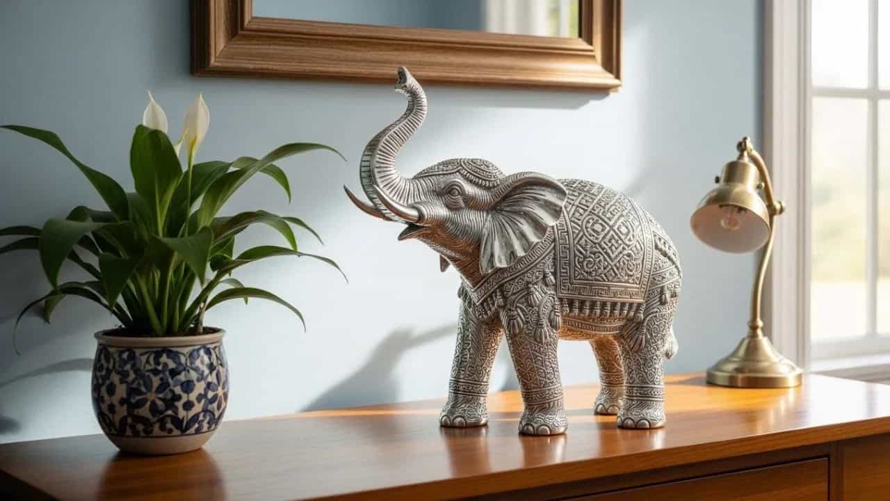 जर तुम्हाला तुमच्या घरासाठी हत्तीची मूर्ती हवी असेल, तर चांदी, पितळ किंवा संगमरवरीपासून बनवलेला हत्ती निवडणे शुभ मानले जाते. वास्तु मान्यतेनुसार, या पदार्थांपासून बनवलेले हत्ती शुभ आणि सकारात्मक उर्जेचे प्रतीक मानले जातात. योग्य धातू निवडणे तसेच ती योग्य दिशेने स्थापित करणे घराचे ऊर्जा संतुलन सुधारण्यास मदत करते आणि वातावरण अधिक अनुकूल बनवते.