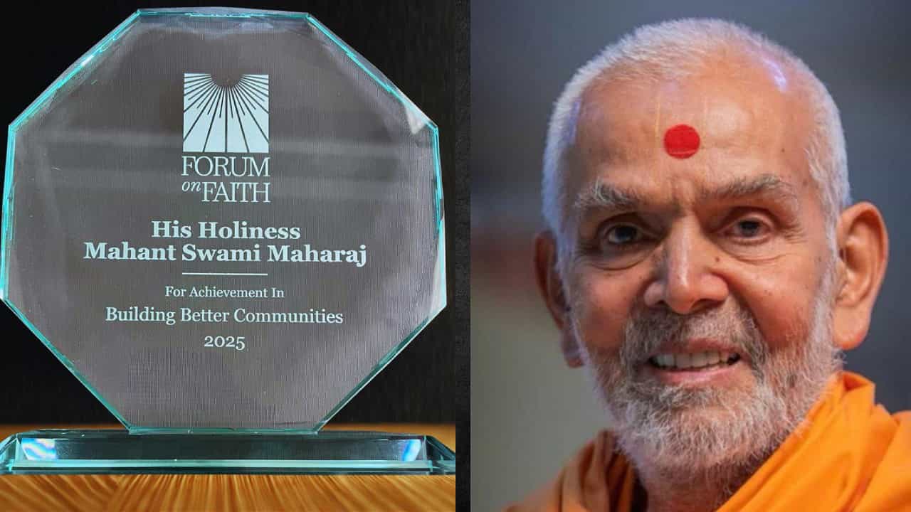 इंटरनॅशनल फोरम ऑन फेथ 2025 सोहळ्यात "उत्तम समुदाय निर्माण" साठी महामहिम महंत स्वामी महाराज यांचा अमेरिकेतील न्यूयॉर्क शहरात सन्मान करण्यात आला आहे.