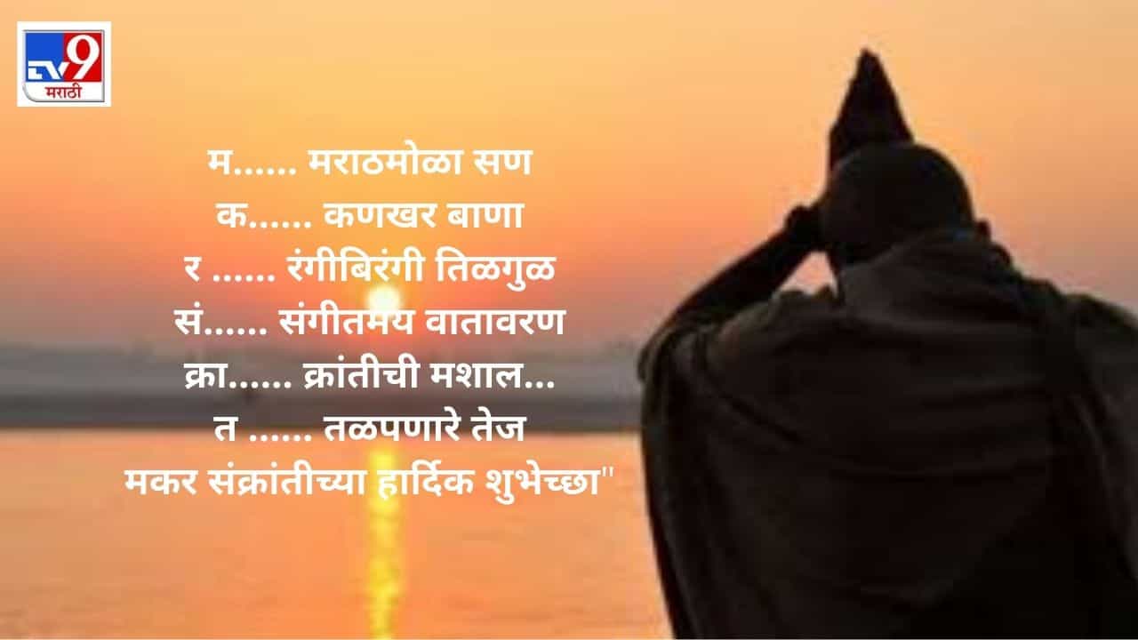 मकर संक्रांतीचे हिंदूंसाठी खूप महत्त्व आहे. मकर संक्रांती 2022 हा भारतात मोठ्या उत्साहाने साजरा केला जाणारा एक प्रमुख सण आहे. हा सण दरवर्षी 14 जानेवारीला (14 January)येतो . शास्त्रात हा सण तपश्चर्या, उपासना, दान आणि त्यागासाठी शुभ मानला गेला आहे. मकर संक्रांती ही भगवान सूर्याला समर्पित आहे आणि सूर्याचा मकर राशीत प्रवेश करतो. या प्रसंगी तुमच्या प्रियजनांना मराठीतून शुभेच्छा द्या.
