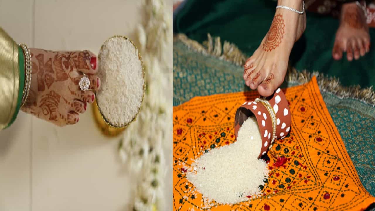 वधू गृहप्रवेशावेळी तांदळाने भरलेलं माप का ओलांडते? काय आहे त्यामागील खास कारण