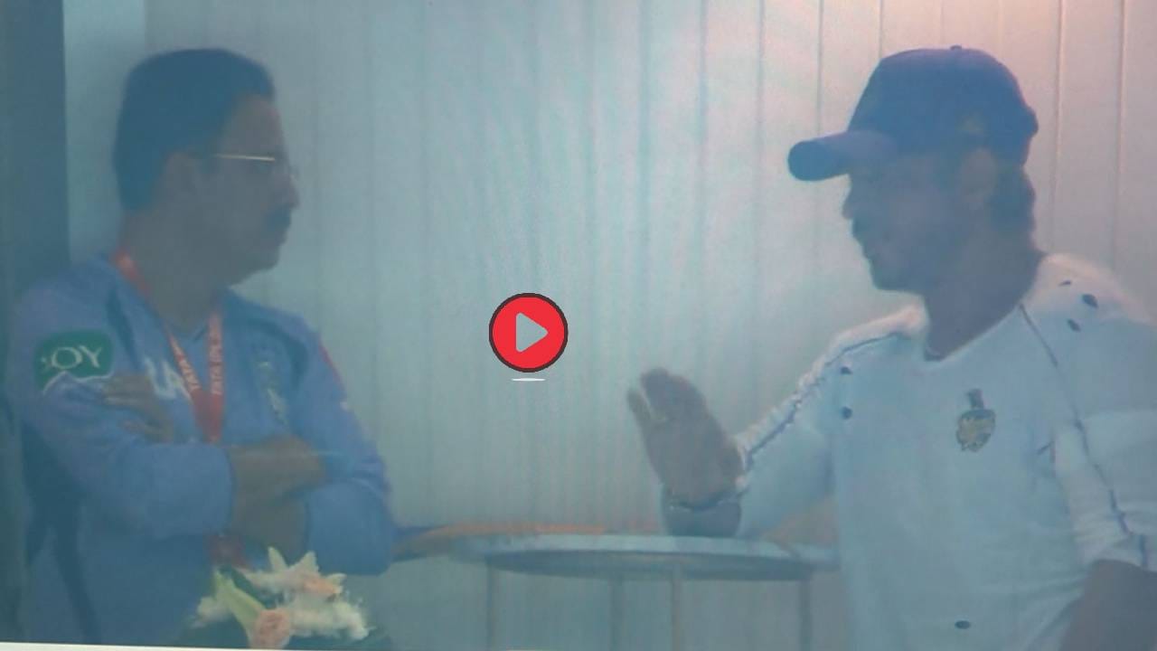 पाऊस सुरू असताना शाहरुख खान ड्रेसिंग रुममध्ये गेला आणि खेळाडूंची भेट घेतली. यावेळी तो KKRचे सीईओ वेंकी मैसूर यांच्याशी जोरदार चर्चा करताना दिसला. व्हायरल झालेल्या व्हिडीओत शाहरुख खान हातवारे करत काही तरी गंभीर बोलत असल्याचे स्पष्ट दिसते. टीमच्या कामगिरीवर तो नाराज असल्याचे चित्र सामोरे आले आहे.