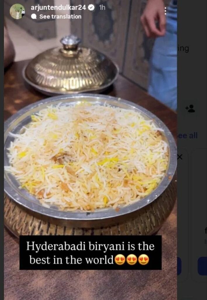 खरंतर हैदराबादी बिर्याणी हा अर्जुन तेंडुलकरचा अतिशय आवडता पदार्थ आहे. त्याने नुकतीच हैदराबादी बिर्याणीबद्दल एक इन्स्टाग्राम स्टोरी पोस्ट केली, जगातील सर्वोत्तम पदार्थ, असल्याचं त्याने त्यात नमूद केलं होतं. पण हाच स्वादिष् पदार्थ खाऊन सनरायजर्सच्या क्लासेनची जी अवस्था झाली, त्याचा तुम्ही विचारही करू शकणार नाही.