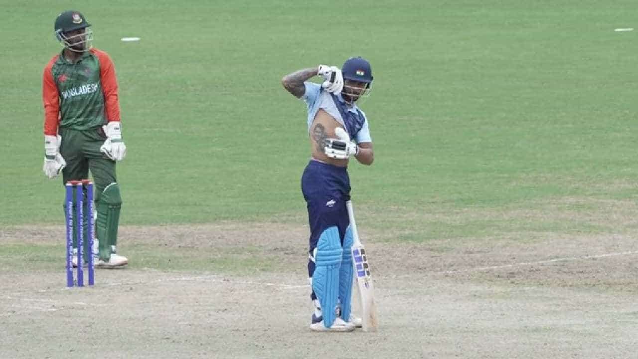 मुंबई : एशियन गेम्स स्पर्धेत महिला क्रिकेट संघानंतर आता पुरुष संघही सुवर्ण पदकाच्या शर्यतीत आहे.उपांत्य फेरीत बांगलादेशला पराभूत करत टीम इंडियाने अंतिम फेरीत स्थान निश्चित केलं आहे. भारतीय कर्णधार ऋतुराज गायकवाड याने नाणेफेकीचा कौल जिंकत प्रथम गोलंदाजी करण्याचा निर्णय घेतला आणि बांगलादेशला 20 षटकात 9 गडी घेत 96 धावांवर रोखलं. भारताने हे विजयी आव्हान अवघ्या 9.2 षटकात पूर्ण केलं आणि अंतिम फेरीत स्थन मिळवलं आहे. या सामन्यात तिलक वर्मा याने 26 चेंडूत अर्धशतक झळकावलं आहे. तसेच अर्धशतक त्याने अनोख्या अंदाजात सेलिब्रेट केलं. सामन्यानंतर त्याने या मागचं कारण देखील स्पष्ट केलं.