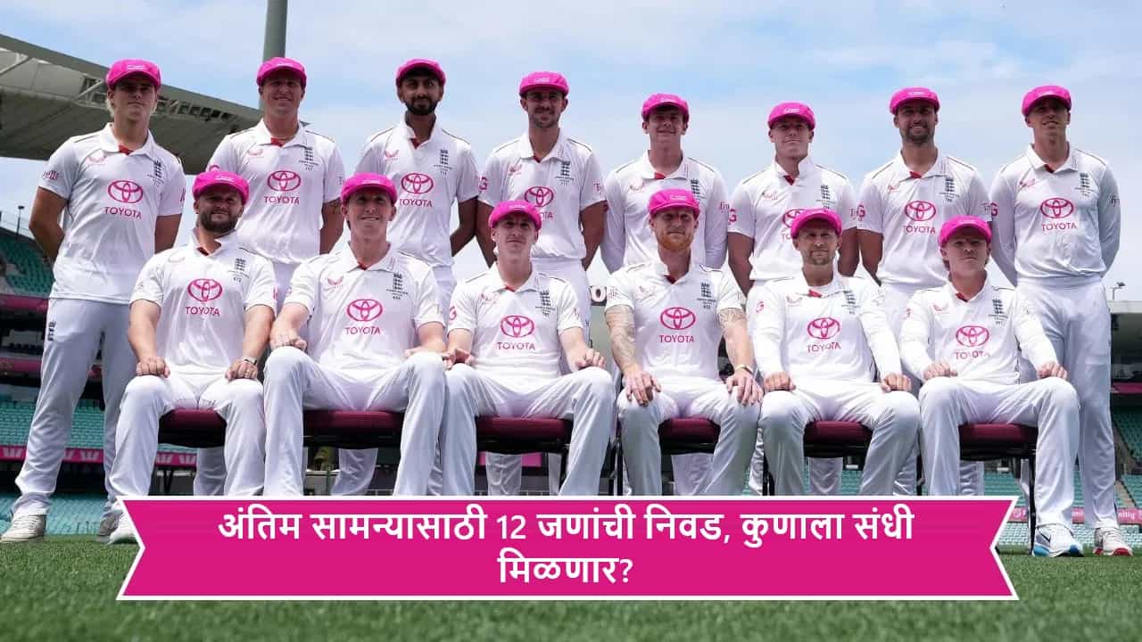 Australia vs England 5th test Match Ashes Series : बेन स्टोक्स याच्या नेतृत्वात इंग्लंड क्रिकेट टीम पाचवा आणि अंतिम कसोटी सामना खेळणार आहे. इंग्लंड टीम मॅनेजमेंटने सामन्याच्या 48 तासांआधी 12 सदस्यीय संघाची घोषणा केली आहे.