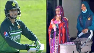 ऑकलंड: आयसीसी महिला विश्वचषक स्पर्धेत (ICC Women’s World Cup 2022)पाकिस्तानी (Pakistan) संघापेक्षा त्यांच्या कर्णधाराचीच जास्त चर्चा आहे. बिस्माह मारुफ (Bismah Maroof) पाकिस्तानी महिला संघाचे नेतृत्व करत आहे. बिस्माह मारुफची चर्चा होण्यामागे कारणही तसंच खास आहे. काही महिन्यांपूर्वीच बिस्माहने एका गोंडस मुलीला जन्म दिला. त्यानंतर मॅटरनिटी लीव संपवून ती थेट मैदानात उतरली आहे. आई झाल्यानंतर वर्ल्डकप ही बिस्माह मारुफची पहिलीच स्पर्धा आहे. आईची जबाबदारी निभावताना बिस्माहने क्रिकेटच्या मैदानात जोरदार कमबॅक केलं आहे. तिने आज वर्ल्डकपच्या दुसऱ्याच सामन्यात थेट अर्धशतक ठोकलं. महत्त्वाचं म्हणजे ऑस्ट्रेलियासारख्या बलाढ्य संघाविरुद्ध तिने हे अर्धशतक झळकावलं आहे. बिस्माहने आज अर्धशतक झळकवल्यानंतर आपल्या आनंदात आपल्या मुलीला फातिमालाही सहभागी करुन घेतलं. तिने फिफ्टी ठोकल्यानंतर ड्रेसिंगरुमकडे पाहून आपला आनंद व्यक्त केला. यावेळी तिची मुलगी ड्रेसिंग रुममध्ये होती. तिने हे अर्धशतक मुलीला समर्पित केलं आहे.