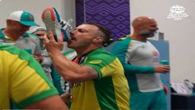 खरतर ऑस्ट्रेलियन क्रिकेट टीम ही जगातील सर्वात मजबूत टीम म्हणून ओळखली जाते, कसोटी आणि वनडेमध्ये त्यांची कामगिरी नेहमीच दमदार राहिली आहे. मात्र त्यांना आतापर्यंत टी20 विश्वचषक जिंकता आता नव्हता, रविवारी झालेली फायनल मॅच जिंकून हा विक्रमही संघाने आपल्या नावावर केला आहे. विजयानंतर ड्रेसिंगरूममध्ये मोठा उत्साह बघायला मिळाला. खेळाडूंनी आपल्या पायातील बूट काढत त्यामध्ये पाणी टाकून ते पाणी पिले. यातून त्यांनी आम्ही टी20 विश्वचषक जिंकण्यासाठी जी मेहनत घेतली ती फळाला आल्याचा संदेश दिला आहे. त्यांचा हा व्हिडीओ सोशल मीडियावर आता चांगलाच व्हायरल होत आहे.