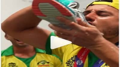 रविवारी टी20 विश्वचषकाच्या अंतिम सामन्यात ऑस्ट्रेलियाने न्यूझीलंडला 8 विकेट्सनी मात दिली. या सामन्यात ऑस्ट्रेलियाच्या गोलंदाजांनी सपाटून मार खाल्ला, मात्र फलंदाजांनी ही कसर भरून काढली. फलंदाजांनी केलेल्या उत्कृष्ट खेळीच्या जोरावर ऑस्ट्रेलियाने विजय मिळवला. इतिहासात पहिल्यांदाच ऑस्ट्रेलियाचा संघ टी20 विश्वचषक जिंकल्याने विश्वचषक पटकवल्यानंतर ऑस्ट्रेलियन खेळाडूंचा आनंद गगनात मावत नव्हता. याचवेळी काही खेळाडूंनी आपल्या बुटामध्ये पाणी आणि इतर पेय टाकून पियाले. हा व्हिडीओ आयसीसीसने (ICC) सोशल मीडियावर पोस्ट केला असून प्रचंड प्रमाणात व्हायर होत आहे.