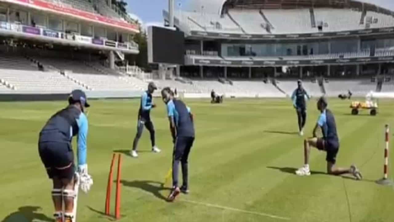 (BCCI Shares Video of fielding Coach R Sridhar taking practice of indian players at lords)