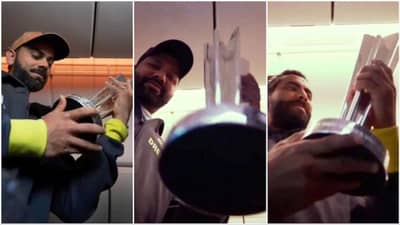 भारतीय क्रिकेट नियामक मंडळाने (BCCI) एक व्हिडिओ सोशल मीडियावर शेअर केला आहे. या व्हिडिओमध्ये रोहित शर्मा, विराट कोहलीसह संपूर्ण टीम इंडियातील खेळाडू ट्रॉफीसह दिसून येत आहेत. रोहित शर्मा ट्रॉफीसोबत जल्लोष करतानाही दिसत आहे. काही तासांत हा व्हिडिओ सोशल मीडियावर चांगलाच व्हायरल झाला आहे. त्याला हजारो जणांना लाइक अन् कॉमेंट केल्या आहेत. या व्हिडिओनंतर आलेल्या प्रतिक्रियांमध्ये रोहित शर्मा आणि विराट कोहलीचे कौतूक करण्यात आले आहे. It’s home असे दोन शब्दांचे कॅप्शन बीसीसीआयने व्हिडिओ ट्विट करताना दिले आहे.