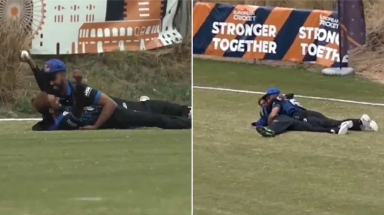 VIDEO | कॅचच्या नादात एकमेकांना धडकून पडले, मिठ्या मारल्या, पण कॅच सोडला नाय