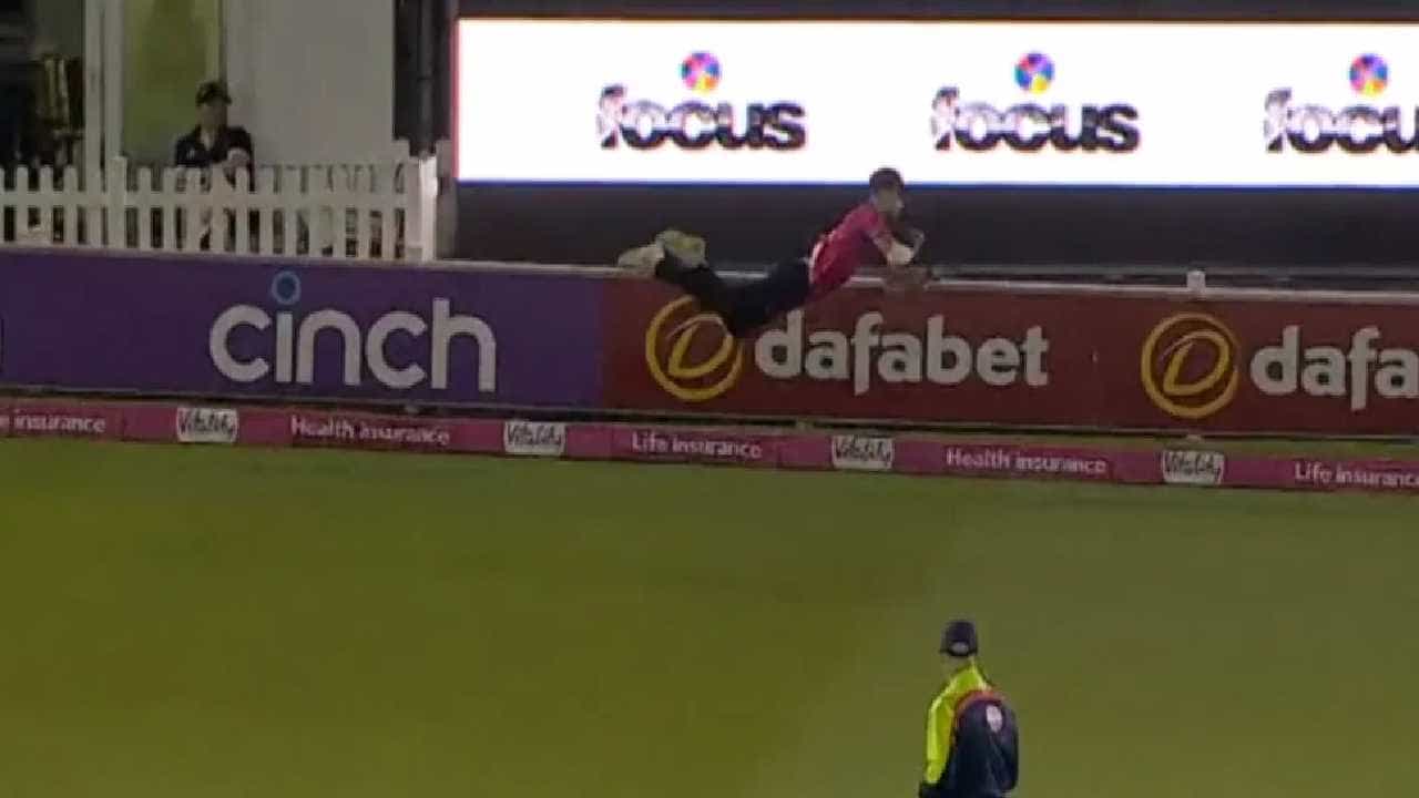 इंग्लंडमध्ये सुरु असलेल्या T20 लीग Vitality Blast मध्ये अशीच एक कॅच पकडली गेली आहे. ही कॅच पाहून अद्भूत, अविश्वसनीय असेच शब्द तोंडात येतात.