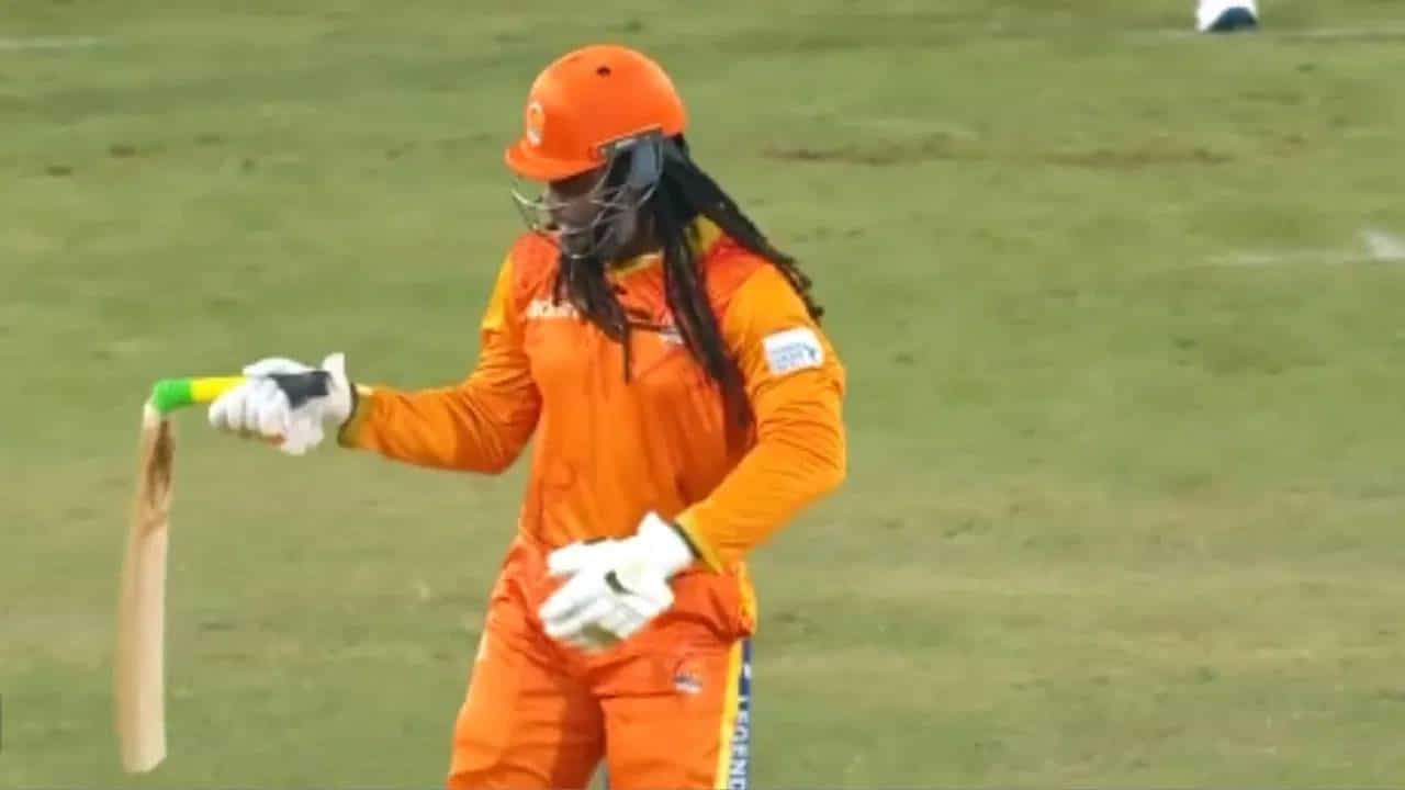 क्रिकेटमध्ये चौकार षटकारांचा पाऊस कोणाला आवडत नाही. मग समोर ख्रिस गेल असला की उत्तुंग षटकारांचा मारा असतो. आंतरराष्ट्रीय क्रिकेटमधून ख्रिस गेल निवृत्त झाला आहे. पण लेजेंड्स लीग त्याची बॅट अजूनही तळपत असल्याचं दिसून आलं आहे. मोठी इनिंग खेळताना ख्रिस गेलची बॅट तुटली. पण त्यानंतर ख्रिस गेलने आणखी आक्रमकपणे फलंदाजी केली.