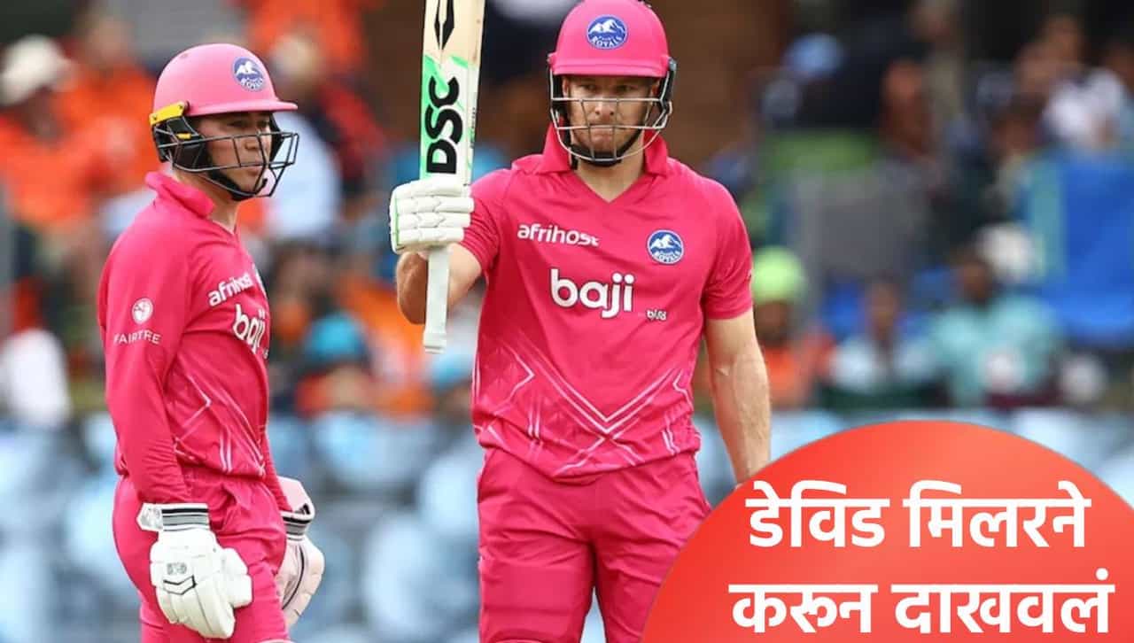 दक्षिण अफ्रिकेचा मधल्या फळीतील डेविड मिलर सामन्याचं चित्र बदलण्याची ताकद ठेवतो. आतापर्यंत त्याने अनेक सामन्यांचं चित्र एकहाती बदललं आहे. त्यामुळे डेविड मिलर खेळपट्टीवर असला की प्रतिस्पर्धी संघाना धाकधूक असते. असंच काहीसं चित्र दक्षिण अफ्रिकेच्या टी20 लीगच्या सातव्या सामन्यात डेविड मिलरने अशीच खेळी केली. गॅबरखामध्ये सनरायझर्स ईस्टर्न केप विरुद्ध पार्ल रॉयल्स यांच्यात सामना पार पडला. या सामन्यात सनरायझर्स ईस्टर्न केपने प्रथम फलंदाजी करताना 20 षटकात 149 धावा केल्या. तसेच विजयासाठी 150 धावांचं आव्हान ठेवलं. हे आव्हान पार्ल रॉयल्सने 2 चेंडू राखून पूर्ण केलं. हा सामना पार्ल रॉयल्सने 5 गडी राखून जिंकला खरा पण एक वेळ हा सामना पूर्णपणे सनरायझर्स ईस्टर्न केपच्या बाजूने झुकलेला होता. पण डेविड मिलरने विजयाचा घास घशातून खेचून आणला.