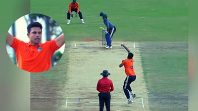 मुंबई : भारताचा माजी क्रिकेटपटू सचिन तेंडुलकरचा मुलगा अर्जुन तेंडुलकरने देवधर ट्रॉफीमध्ये कमाल करून दाखवली आहे. साऊथ झोनकडून खेळणाऱ्या अर्जुन तेंडुलकरने सेंट्रल झोनविरूद्धच्या सामन्यात कडक शानदार गोलंदाजी केली. ज्या फलंदाजाने एकाही बॉलरला सोडलं नव्हतं, ओपनिंगला उतरल्यापासून या फलंदाजाने सर्वांना फोडण्यास सुरूवात केलेली. मात्र अर्जुन तेंडुलकर याने त्याला आपल्या जाळ्यात अडकवत संघाला यश मिळवून दिलं. सोशल मीडियावर याचा व्हिडीओ जोरदार व्हायरल होताना दिसत आहे.