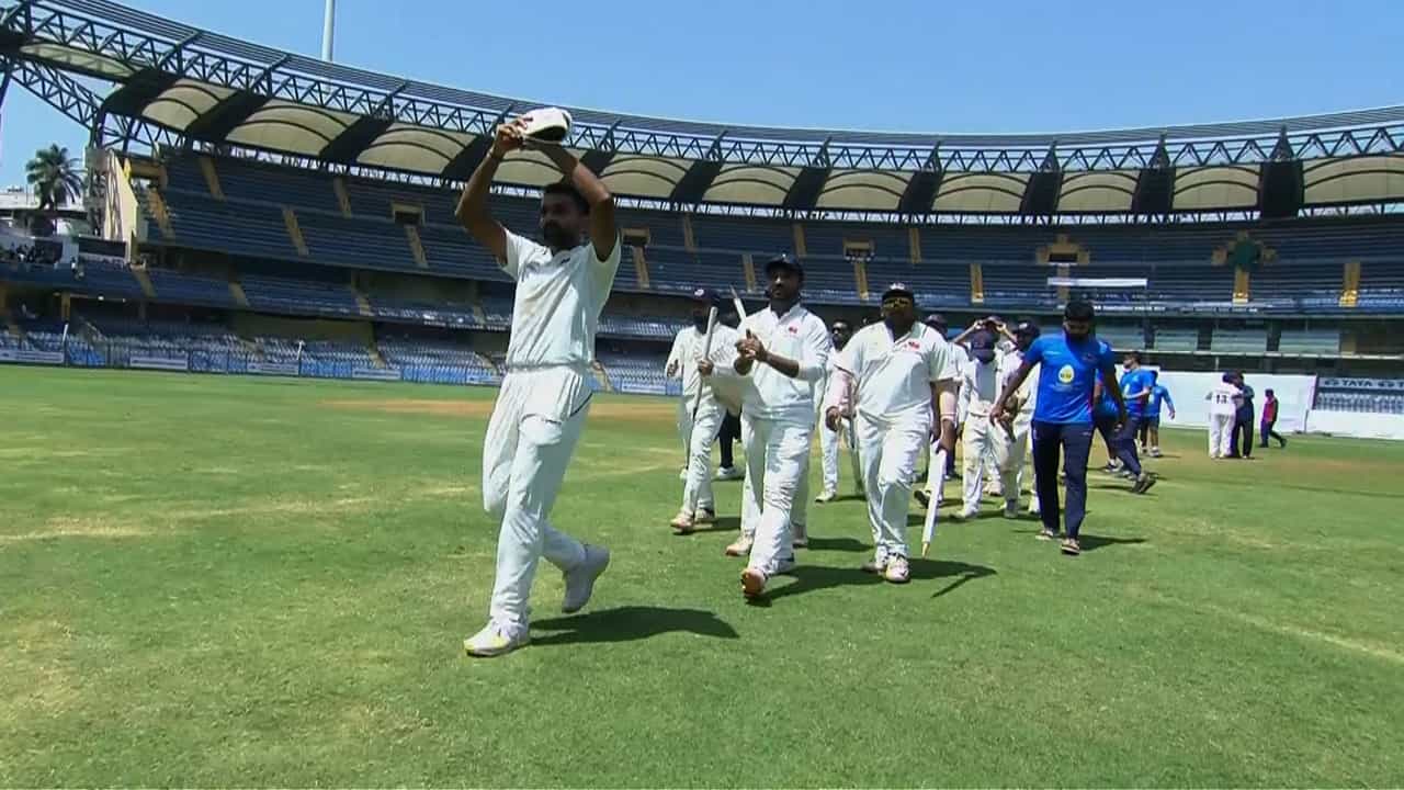 धवल कुलकर्णी याने आधीच रणजी ट्रॉफी फायनल आपला अखेरचा सामना असल्याचं जाहीर केलं होतं. धवलने या महाअंतिम सामन्यात एकूण 4 विकेट्स घेतल्या. धवलने पहिल्या डावात 3 आणि दुसऱ्या डावात 1 विकेट घेतली. धवलने पहिल्या डावात विदर्भाच्या अथर्व तायडे, अमन मोखाडे आणि करुण नायर या टॉप ऑर्डरमधील फलंदाजांना आऊट केलं. तर दुसऱ्या डावात उमेश यादव याला आऊट केलं. धवलने दुसऱ्या डावातील वैयक्तिक पहिली आणि टीमसाठी दहावी विकेट घेतल्यानंतर एकच जल्लोष केला. मुंबईच्या खेळाडूंनी रणजी ट्रॉफी जिंकल्यानंतर एकच जल्लोष केला. यावेळेस कॅप्टन अजिंक्य रहाणे याच्यासह इतर खेळाडूंनी त्याचं अभिनंदन केलं. तसेच स्टेडियममध्ये उपस्थित क्रिकेट चाहत्यांनी त्याला स्टँडिग ओवेशन दिलं.