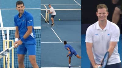 पहिल्यांदा नोवाक जोकोविचने आपल्या टेनिस खेळातून स्टीव्ह स्मिथचा सामना केला. स्टीव्ह स्मिथ समोर असताना जोरदार सर्व्हिस केली. यावेळी स्मिथने त्याची सर्व्हिस त्याच जोमाने परतवून लावली. यामुळे जोकोविचलाही आश्चर्याचा धक्का बसला. त्यावेळी त्याने तो शॉट पुन्हा खेळण्याऐवजी थेट हात वर करून झुकला आणि आश्चर्य व्यक्त केलं. तसेच या शॉट्सचा फॅन झाल्याचं आपल्या हावभावातून दाखवून दिलं.