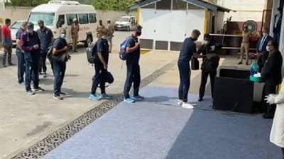 चेन्नई : इंग्लंडचा संघ (England Team) टीम इंडियाविरुद्धच्या (Team India) मालिकेसाठी भारतात पोहोचला आहे. भारतातल्या आगमनाचा व्हिडिओ इंग्लंड टीमच्या अधिकृत ट्विटर हॅंडलवर शेअर करण्यात आला आहे. ज्यामध्ये संघाचे सर्व खेळाडू चेन्नईतील हॉटेलमध्ये प्रवेश करताना दिसत आहेत. (England team Arrives In Chennai For ENg Vs Ind test Match Series)