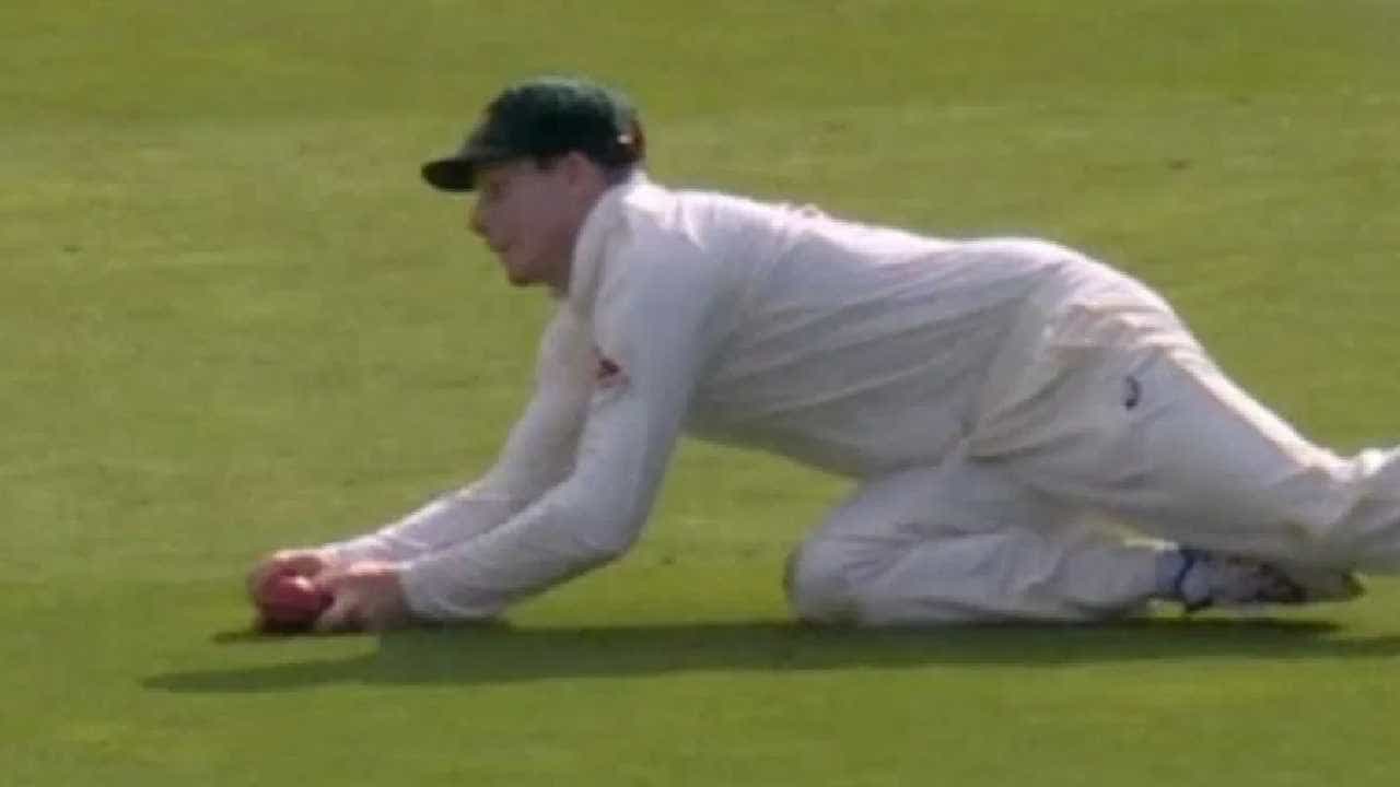 जो रुटला पुन्हा चांगली संधी मिळाली होती. पण ऑस्ट्रेलियन गोलंदाजाने त्याला शॉर्ट चेंडूच्या जाळ्यात फसवलं. मिचेल स्टार्कचा असा शॉर्ट चेंडू रुटने पुल केला. पण टायमिंग बरोबर नव्हता. स्क्वेयर लेगला कॅच गेली. स्टीव्ह स्मिथने पळत जाऊन झेप घेऊन ही कॅच घेतली. इथपर्यंत सगळं ठीक होतं. पण त्याचा हात जमिनीवर पडताच चेंडू मैदानाच्या गवताला लागलाय असं वाटलं. चेंडू स्मिथच्या बोटांमध्ये होता. त्याने चेंडूवर नियंत्रण मिळवण्याचा प्रयत्न केला.