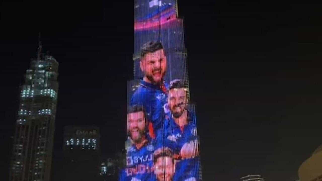 भारताची ही नवी जर्सी बुर्ज खलिफावर झळकली, तेव्हा अप्रतिम अशी रोषणाई कऱण्यात आली होती. अवघा बुर्ज खलिफा भारताच्या जर्सीच्या रंगात न्हावून गेला. यावेळी भारताचे काही क्रिकेटरही इमारतीवर झळकले. यामध्ये विराट कोहली, रोहित शर्मा, ऋषभ पंत, बुमराह अशा काहींचा समावेश आहे. या सर्वांनी नवी जर्सी घातली असून ते जल्लोष करताना दिसत आहे.