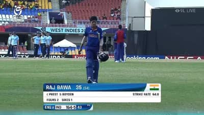 आयसीसी अंडर 19 वर्ल्डकपच्या अंतिम फेरीत सुरुवातीला भारताच्या वेगवान गोलंदाजांनी इंग्लंडला धक्के दिले. रवी कुमारने प्रारंभीच्या षटकांमध्ये इंग्लंडच्या दोन फलंदाजांना माघारी धाडलं. रवीच्या धक्क्यांमधून इंग्लंडचा संघ सावरलेला नसतानाच, ऑलराऊंडर राज बावाने इंग्लंडचा कबंरड मोडलं. सुरुवातीला इंग्लंडची स्थिती 6 बाद 61 अशी झाली होती. यापैकी चार विकेट राज बावा यानं घेतल्या होत्या. जॉर्ज थॉमस, विल लक्सटन, जार्ज बेस, रेहान अहमद यांना राज बावा यानं आऊट केलं होतं. जोशुआ बॉयडेन याला आऊट करत त्यानं पाचवी विकेट घेतली.