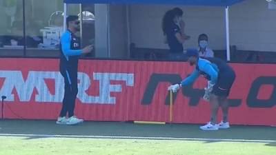धोनीच्या निवृत्तीनंतर भारतीय संघाला सर्वाधिक त्याची कमी एक यष्टीरक्षक आणि फिनीशर म्हणून भासत आहे. त्यामुळेच की काय पण तो सर्वाधिक वेळ ऋषभ पंत आणि हार्दिक पंड्या यांच्यासह घालवताना दिसतो. नुकत्याच पार पडलेल्या ऑस्ट्रेलियाविरुद्धच्या सामन्यातही ऋषभ पंतला विश्रांती देऊन इशानला यष्टीरक्षणासाठी मैदानात पाठवलं होतं. त्यावेळी धोनी सीमारेषेपलीकडे पंतची यष्टीरक्षणाची प्रॅक्टीस घेताानाचा एक व्हिडीओ व्हायरल होत आहे.