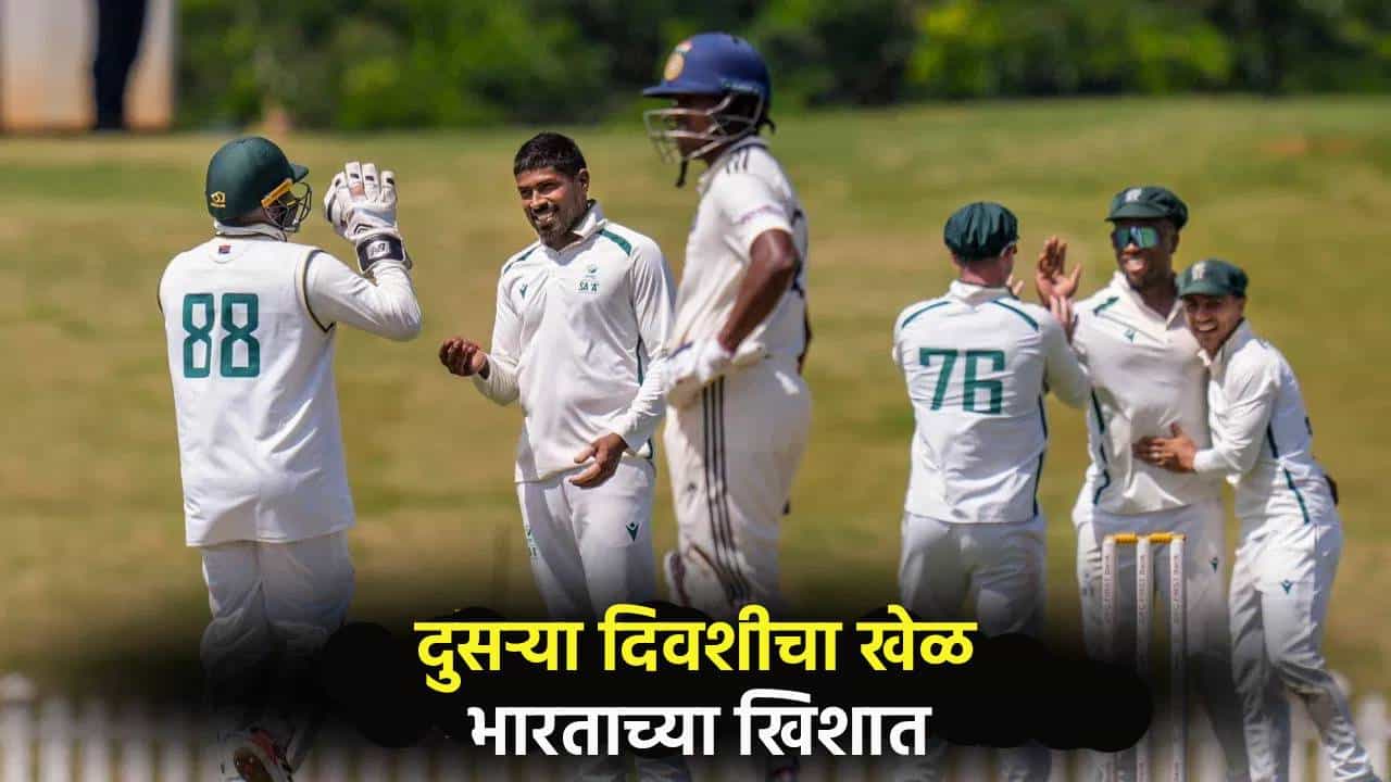 India A vs South Africa A: भारत ए संघाने दुसऱ्या दिवशीचा खेळ गाजवला. भारताने पहिल्या डावात 255 धावा केल्या होत्या. पण दक्षिण अफ्रिकेला 221 धावांपर्यंत मजल मारता आली. भारताकडे 112 धावांची आघाडी आहे.