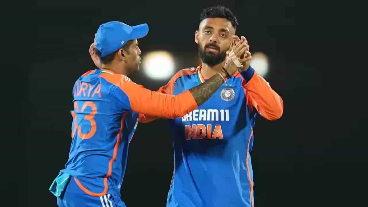 भारत (प्लेइंग इलेव्हन): संजू सॅमसन (विकेटकीपर), अभिषेक शर्मा, तिलक वर्मा, सूर्यकुमार यादव (कर्णधार), ध्रुव जुरेल, हार्दिक पांड्या, वॉशिंग्टन सुंदर, अक्षर पटेल, मोहम्मद शमी, रवी बिश्नोई, वरुण चक्रवर्ती