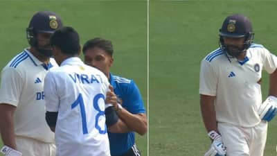 विराट कोहलीचा एक चाहत्याने मैदानात धाव घेतली आणि रोहित शर्माचे पाय पकडले. त्या चाहत्याने विराट कोहलीची 18 नंबरची जर्सी परिधान केली होती. त्यावर विराट कोहली आणि 18 नंबर लिहिलेला होता. रोहित शर्माने विराटच्या चाहत्याला नाराज केलं नाही. त्याला आपल्या जवळ येऊ दिलं . पण काही क्षणात सुरक्षारक्षक त्याच्या जवळ पोहोचले आणि त्याला बाहेर खेचत नेलं. ही घटना आता सोशल मीडियावर व्हायरल होत आहे.