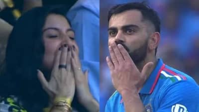 सचिन तेंडुलकरला नमन केल्यानंतर पत्नी आणि बॉलिवूड अभिनेत्री अनुष्का शर्मा हिला फ्लाइंग किस केलं. इतकंच काय तर अनुष्काने तशीच प्रतिक्रिया दिली. विराट कोहलीची ही रिएक्शन सोशल मीडियावर व्हायरल होत आहे.