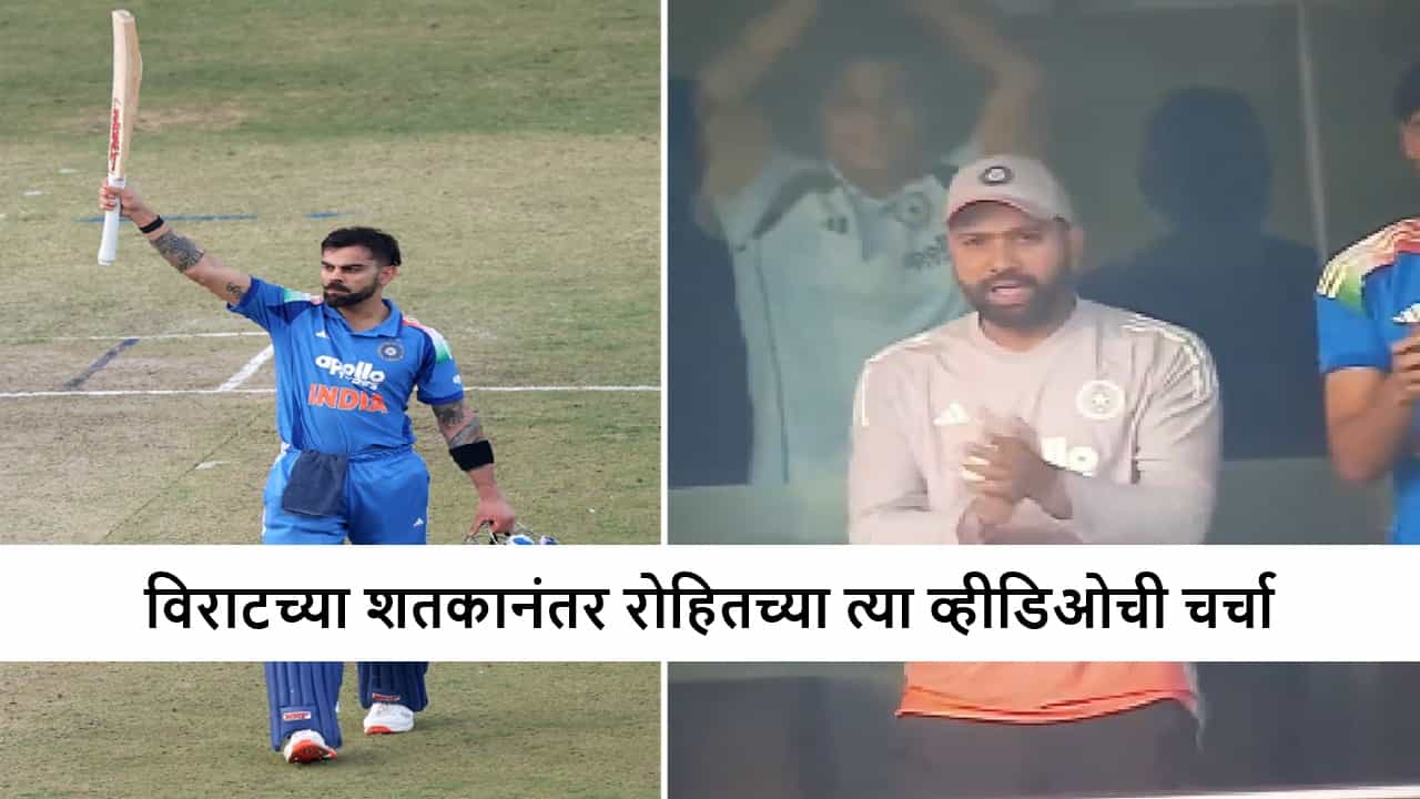 विराटचं हे एकदिवसीय कारकीर्दीतील 52 वं तर आंतरराष्ट्रीय क्रिकेटमधील 83 वं शतक ठरलं. विराट यासह एका प्रकारात सर्वाधिक शतकं करणारा एकमेव फलंदाज ठरला. विराटच्या या शतकाची साऱ्या भारताला प्रतिक्षा होती. मात्र 90 चा टप्पा पार केल्यानंतर रोहितला विराटच्या शतकाची अधिक प्रतिक्षा होती. ड्रेसिंग रुममध्ये असलेला रोहित विराटच्या प्रत्येक बॉलनंतर हातवारे करुन तसेच हावभावाद्वारे प्रतिक्रिया देत होता. मात्र विराटने शतक केल्यांनतर रोहितने आनंद व्यक्त केला. रोहितने बसल्या जागी उभं राहत विराटसाठी टाळ्या वाजवल्या. रोहितने या दरम्यान विराटला उद्देशून शिव्या दिल्याचा दावा सोशल मीडियावर केला जात आहे. रोहितचा हा व्हीडिओ सोशल मीडियावर व्हायरल झाला आहे.