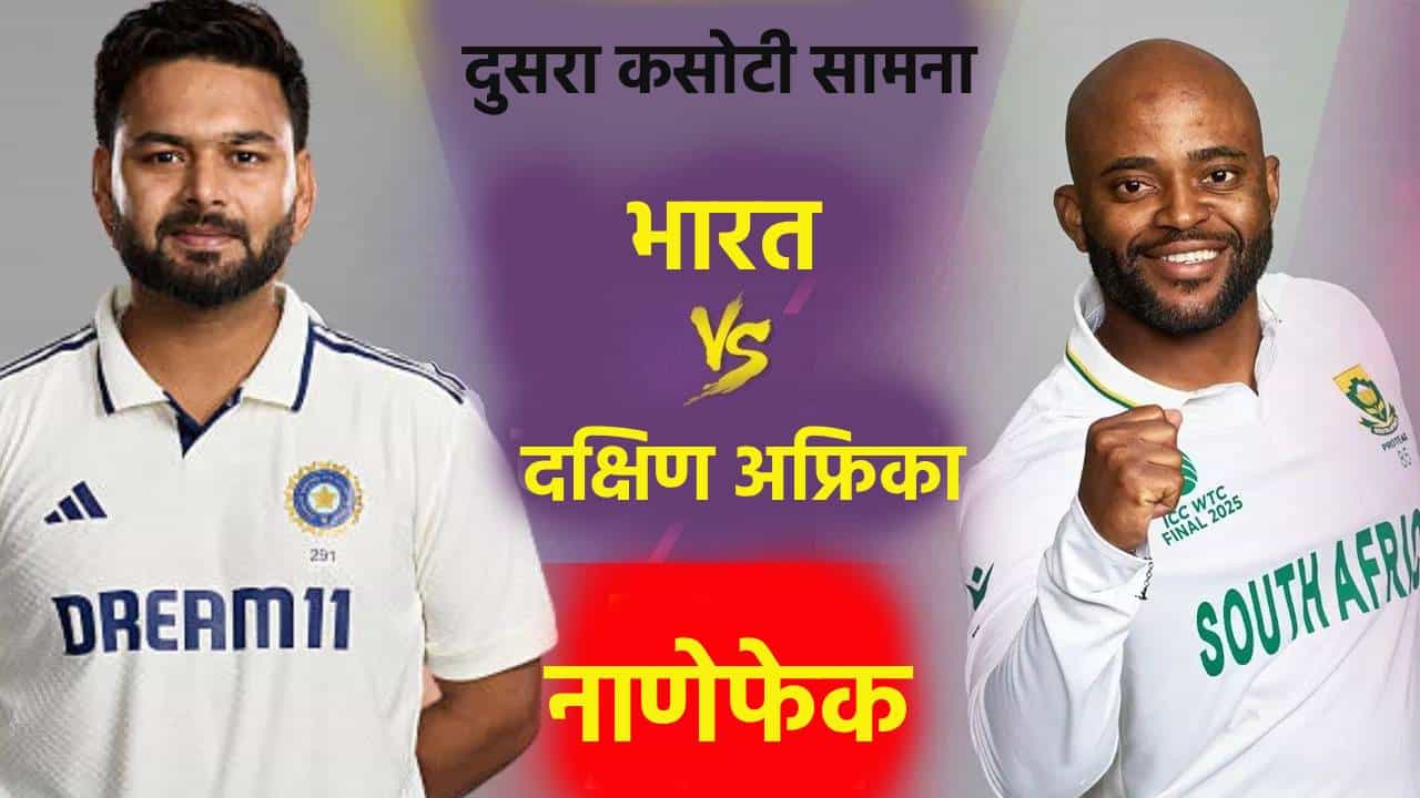 भारत आणि दक्षिण अफ्रिका विरुद्धचा दुसरा कसोटी खूपच महत्त्वाचा आहे. भारतीय संघावर मालिका गमवण्याचं संकट उभं आहे. त्यामुळे मालिका बरोबरीत सोडवण्यासाठी काहीही करून जिंकावं लागणार आहे. पण भारताच्या या सामन्यापूर्वीच टेन्शन आहे. कारण शुबमन गिल दुखापतग्रस्त असल्याने या सामन्याला मुकला आहे. तसेच कर्णधारपद ऋषभ पंतच्या खांद्यावर आहे. त्यामुळे या सामन्यात ऋषभ पंतच्या नेतृत्वात टीम इंडिया चांगली कामगिरी करेल का? असा प्रश्न क्रीडाप्रेमींना पडला आहे. दरम्यान, नाणेफेकीचा कौल हा दक्षिण अफ्रिकेच्या बाजूने लागला. दक्षिण अफ्रिकेचा कर्णधार टेम्बा बावुमा म्हणाला की, ‘आम्ही पहिल्यांदा फलंदाजी करू. आपल्याला नव्याने सुरुवात करावी लागेल. विकेट खूपच चांगली दिसतेय. आधी फलंदाजी करा, आधी मोठा स्कोअर करण्याचा प्रयत्न करा. खेळपट्टीवर खरोखरच कोणतेही क्रॅक नाहीत. खूप उत्साहित आहे, या ऐतिहासिक क्षणाचा भाग होण्यास आनंदी आहे. एक बदल असून मुथुस्वामी येतोय.’