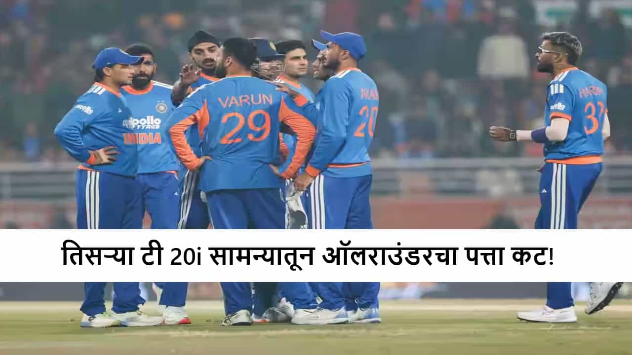 तिसऱ्या टी 20i मॅचसाठी टीम इंडियाची प्लेइंग ईलेव्हन : अभिषेक शर्मा, शुबमन गिल, सूर्यकुमार यादव (कर्णधार), तिलक वर्मा, हार्दिक पंड्या, जितेश शर्मा, अक्षर पटेल, कुलदीप यादव, वरुण चक्रवर्ती, अर्शदीप सिंह आणि जसप्रीत बुमराह.