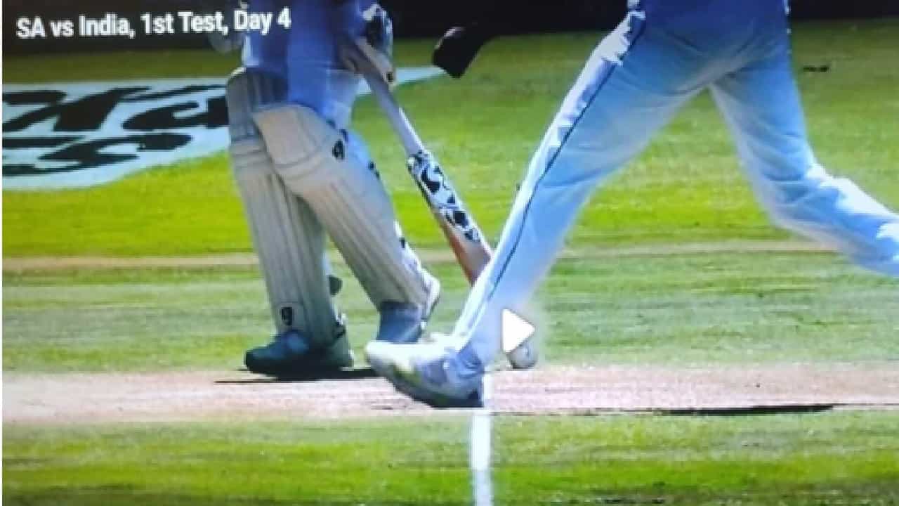 आज चौथ्यादिवसाच्या खेळाला सुरुवात झाल्यानंतर राबाडाच्या गोलंदाजीवर शार्दुलने 10 धावांवर असताना म्युलडरकडे झेल दिला. शार्दुल बाद झाल्यानंतर काही वेळातच सोशल मीडियावर एक फोटो व्हायरल झाला आहे. यामध्ये राबाडाने ओव्हरस्टेपिंग केल्याचा दावा करण्यात आला आहे. गोलंदाजी करताना रेषेबाहेर गोलंदाजाचा पाय गेला, तर तो नोबॉल असतो. थर्ड अंपायरने ही गोष्ट हेरली नाही, असं टि्वटर युजर्सचं म्हणणं आहे. हा फोटो आता व्हायरल होत आहे.