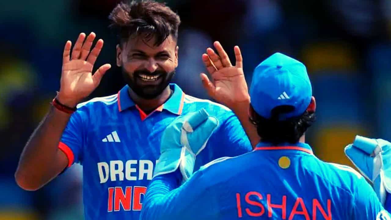 बिहारच्या गोपाळगंजचा असणाऱ्या मुकेश कुमारने वनडेमध्ये पदार्पण केलं. याआधी कसोटी सामन्यामध्ये मुकेश कुमारला पदार्पण करण्याची संधी देण्यात आली होती. क्रिकेटच्या दोन्ही फॉरमॅटमध्ये कमी वेळात पदार्पण करण्याच्या यादीत मुकेशने स्थान मिळवलंय. वेस्ट इंडिजविरुद्धच्या कसोटी मालिकेतील दुसऱ्या सामन्यात त्याने आंतरराष्ट्रीय क्रिकेटमध्ये पदार्पण केले होते. मुकेशने कारकिर्दीतील पहिल्या कसोटी सामन्यात 2 विकेट घेतल्या होत्या.