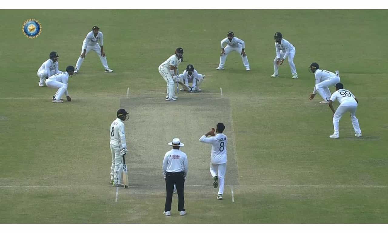 भारतीय संघाला पहिल्या डावात 345 धावांवर रोखल्यानंतर दुसऱ्या दिवसअखेर न्यूझीलंडने धमाकेदार सुरुवात केली होती. न्यूझीलंडने दुसऱ्या दिवशी एकही गडी न गमावता 57 षटकांमध्ये 129 धावांपर्यंत मजल मारली होती. मात्र सामन्याच्या तिसऱ्या दिवशी भारतीय गोलंदाजांनी चांगलंच पुनरागमन केलं. भारतीय गोलंदाजांनी किवी संघाचा डाव 142.3 षटकांमध्ये 296 धावांवर रोखला. त्यामुळे टीम इंडियाला 49 धावांची नाममात्र आघाडी मिळाली.न्यूझीलंडच्या सलामीवीरांव्यतिरिक्त एकाही किवी फलंदाजाला मोठी खेळी उभारता आली नाही. आज सकाळच्या सत्रात रवीचंद्रन अश्विनने आक्रमक विल यंग याला 89 धावांवर असताना बाद करत भारताला ब्रेकथ्रू मिळवून दिला. यंगने 214 चेंडूत 15 चौकारांच्या मदतीने ही खेळी उभारली. त्यानंतर भारतीय गोलंदाजांनी ठराविक अंतराने एकेका किवी फलंदाजाला पव्हेलियनचा रस्ता दाखवला. याचदरम्यान, खेळपट्टीला चिकटून बसलेल्या टॉम लॅथम याला अक्षर पटेलने बाद केलं.