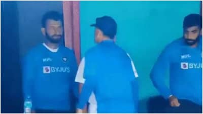 गोल्डन डकवर बाद झाल्यानंतर पुजाराने कपडे चेंज करुन ड्रेसिंग रुममध्ये प्रवेश केला. त्यावेळी हेड कोच राहुल द्रविड आपल्या जागेवरुन उठले व त्यांनी पुजाराची पाठ थोपटली. राहुल द्रविडच्या त्या कृतीनंतर पुजाराच्या चेहऱ्यावर हास्य होते. द्रविड आणि पूजाराचा ड्रेसिंग रुममधील तो व्हिडिओ व्हायरल होत असून क्रिकेट चाहत्यांनी राहुल द्रविडला सलाम केला आहे.