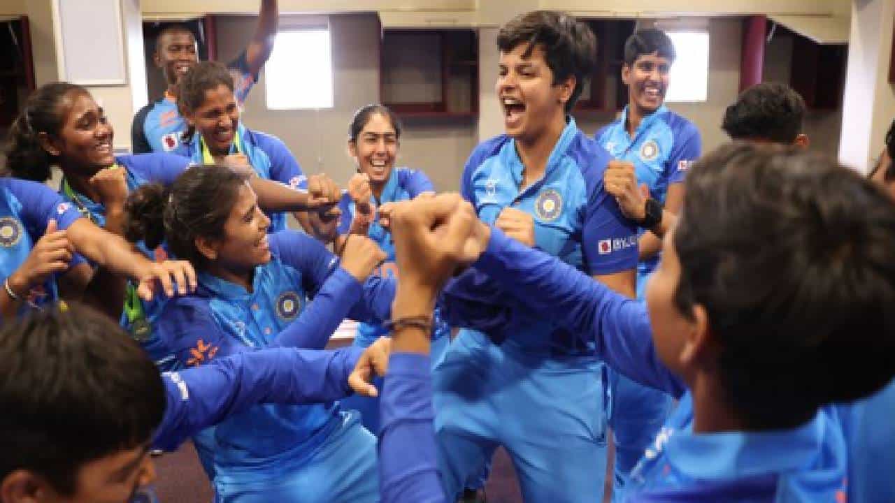 U-19 WC Final : आज प्रत्येक भारतीयाला महिला क्रिकेट संघाचा अभिमान वाटतोय. कारण त्य़ांनी कामगिरीच तशी केलीय. आतापर्यंत जे झालं नव्हतं, ते भारतीय मुलींनी दक्षिण आफ्रिकेत करुन दाखवलं. शेफाली वर्माच्या नेतृत्वाखील भारतीय महिला टीमने पहिल्या आयसीसी अंडर-19 महिला वर्ल्ड कपच जेतेपद मिळवलं. महिला क्रिकेटमध्ये भारताचा हा पहिला वर्ल्ड कप विजय आहे. या विजयानंतर सेलिब्रेशन होणं स्वाभाविक आहे. रविवारी फायनल सामना झाला. टीम इंडियाने इंग्लंडवर सात विकेट राखून विजय मिळवला. त्यानंतर जोरदार सेलिब्रेशन केलं.