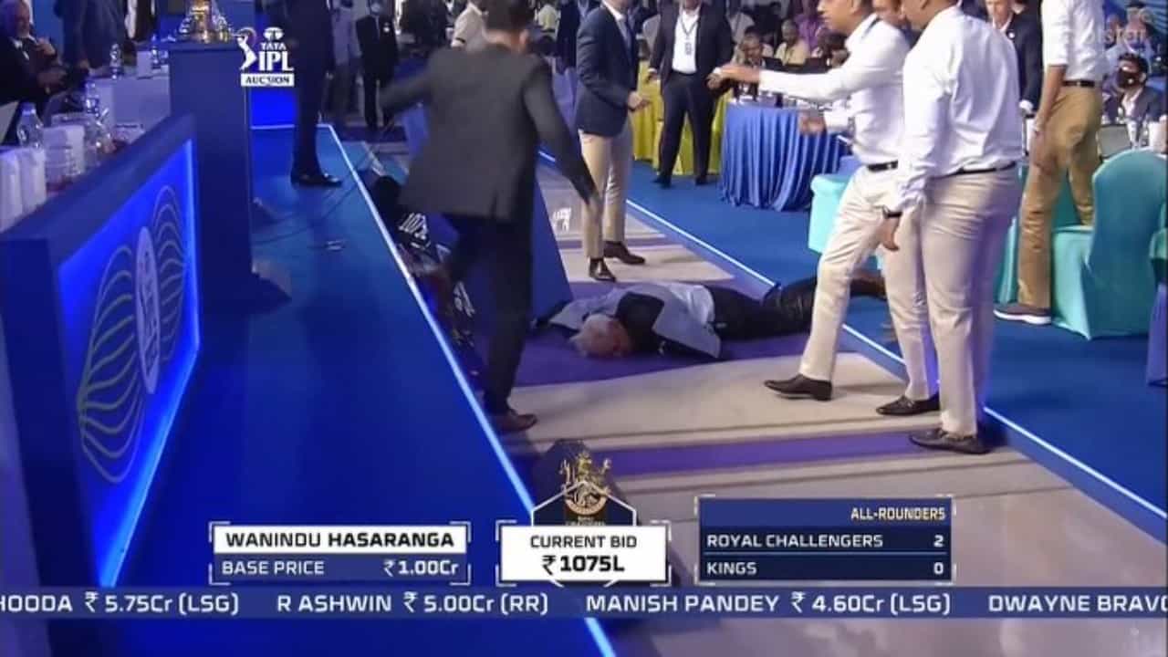 Britain’s Hugh Edmeades faints out suddenly during live IPL Auction. Hope he is fine ?.#IPLMegaAuction2022, #IPLAuction pic.twitter.com/UJT7Jj717v