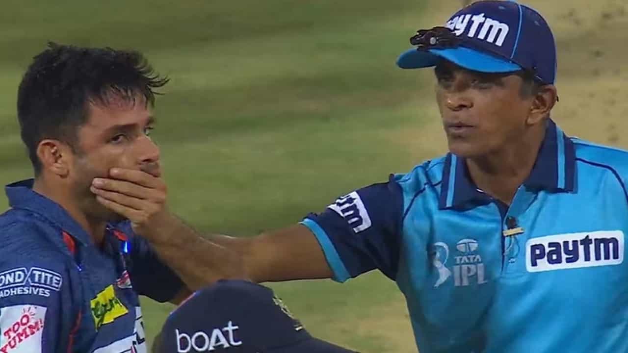 लखनऊ सुपर जायंट्सचा लेग स्पिनर रवि बिश्नोई याने विराट कोहली याला आऊट केलं. त्यानंतर रविने मैदानात सेलिब्रेशन करायला सुरुवात केली. मात्र यावेळेस रविला अंपायरचा जोरदार फटका खावा लागला.