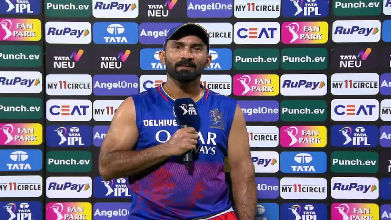आयपीएलच्या 17 व्या मोसमात सलग 6 सामने गमावल्यानंतर फाफ डु प्लेसिस याच्या नेतृत्वात रॉयल चॅलेंजर्स बंगळुरुने सलग 6 सामने जिंकून प्लेऑफमध्ये मोक्याच्या क्षणी धडक मारली. बुधवारी 22 मे रोजी राजस्थान रॉयल्स विरुद्ध रॉयल चॅलेंजर्स बंगळुरु यांच्यात एलिमिनेटर सामान पार पडला. राजस्थान रॉयल्सने या सामन्यात विजय मिळवला. राजस्थानने आरसीबीचा विजय रथ रोखला. आरसीबीचं या पराभवासह यंदाही आयपीएल चॅम्पियन होण्याचं स्वप्न भंग झालं. आरसीबीच्या पराभवानंतर दिग्गज विकेटकीपर बॅट्समन दिनेश कार्तिक याने चाहत्यांचा निरोप घेतला. कार्तिकने सर्वांचे आभार मानले. तसेच आरसीबी आणि राजस्थान दोन्ही संघांच्या खेळाडूंनी त्याला अभिवादन केलं.