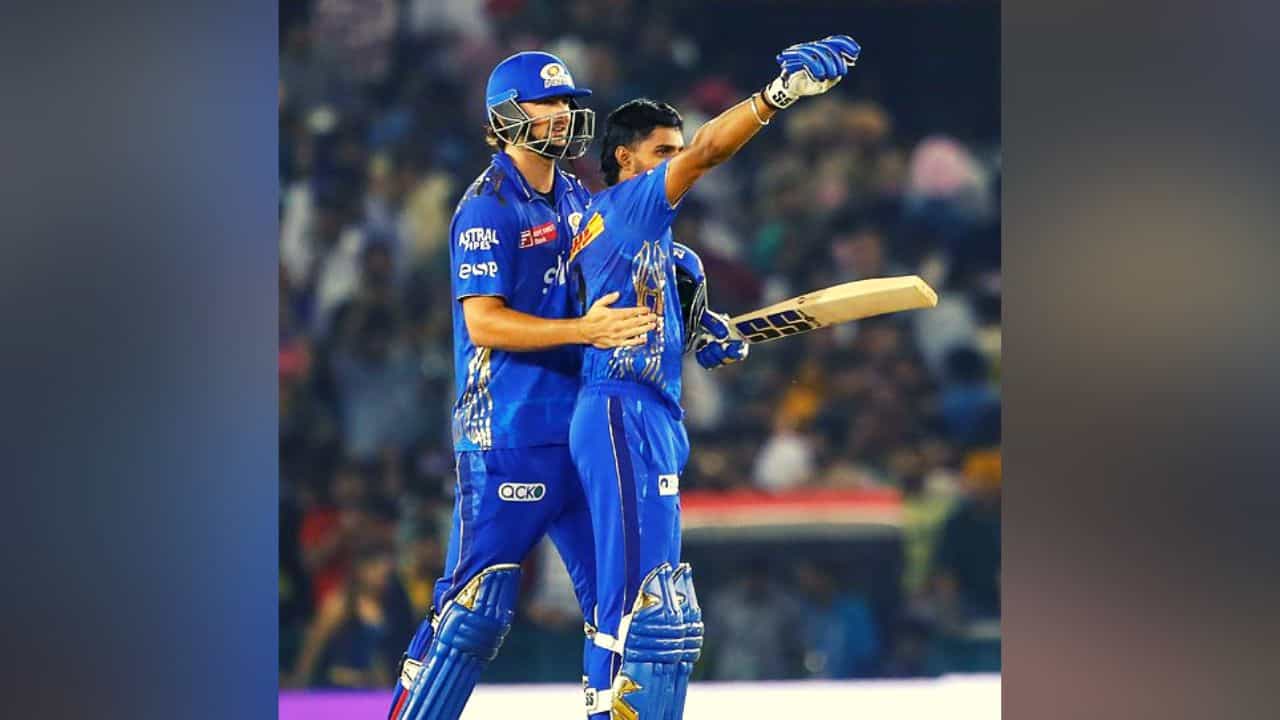 मुंबईकडून हे लक्ष पूर्ण करण्यासाठी उतरलेल्या सलामीवीरांनी एकदम निराशाजनक सुरुवात केली. रोहित शून्यावर झाला, त्यानंतर ग्रीन फलंदाजीला आला मात्र 23 धावांवर तोसुद्धा आऊट झाला. ग्रीन आऊट झाल्यावर इम्पॅक्ट प्लेअर म्हणून आलेल्या सूर्यकुमार यादवने वादळी खेळी केली. दुसरीकडे ईशान किशन यानेही एक बाजू लावून धरली होती. दोघांनी अनुक्रमे 75 धावा आणि 66 धावा केल्या. शेवटी तिलक वर्मा याने आक्रमक फलंदाजी करत सिक्स मारत संघाच्या विजयावर शिक्कामोर्तब केलं.